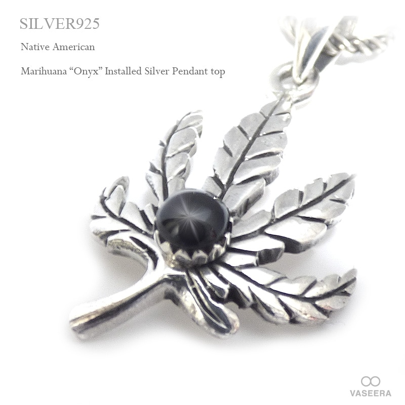 ネイティブアメリカン オニキス埋め込み 立体マリファナ シルバー ペンダント トップ 【シルバー925/SILVER925 /ペン...