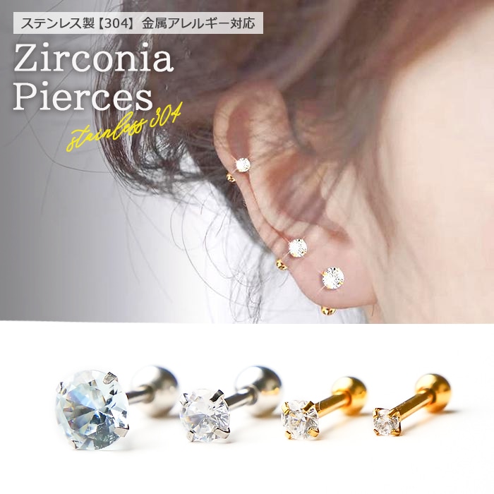 金属アレルギー対応 204. ネジ式 キュービックジルコニア 一粒 ピアス 18ゲージ 2mm 3mm 4mm 6mm ボディピア...