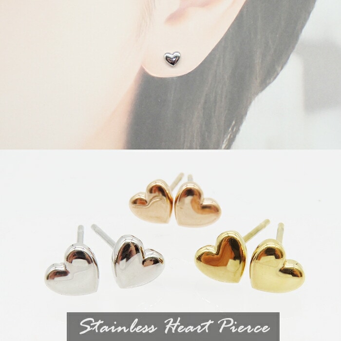 ステンレス 48. ミニハート スタッド ピアス 1ペア 当店オリジナル 金属アレルギー対応 つけっぱなし 小さめ 小さい かわい...