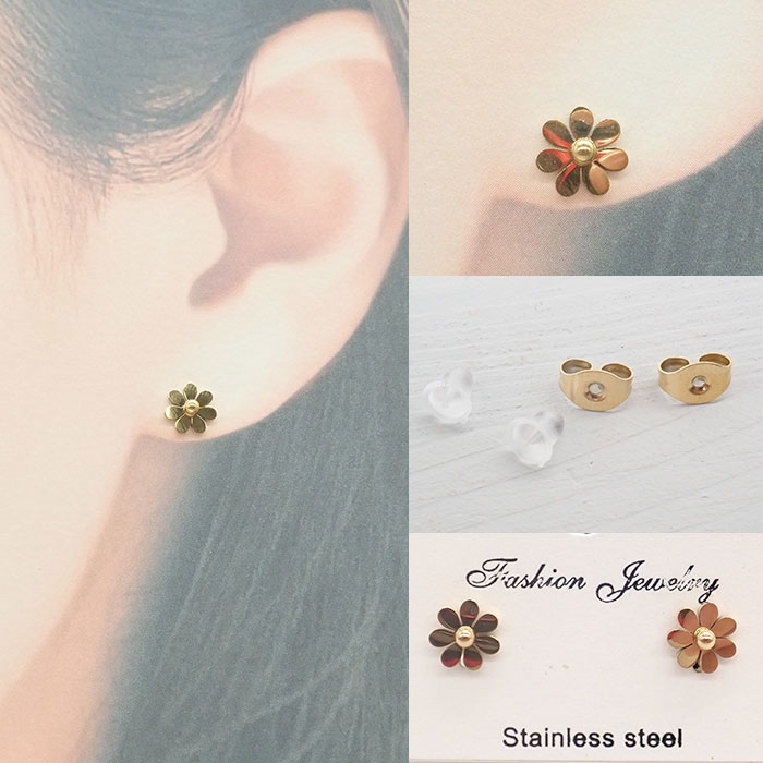 金属アレルギー対応 123. ピアス(花)約6mm 1ペア ゴールド ステンレス(SUS304) 国内発送