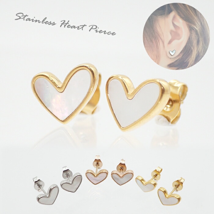 【【【 メール便送料無料 】】】ステンレス 53. シェル入り ハート スタッド ピアス 1ペア 当店オリジナル 金属アレルギー対...