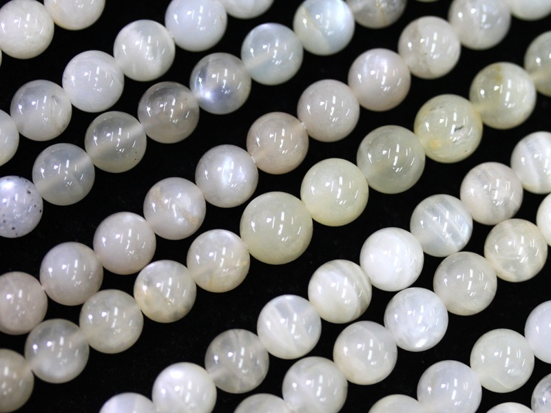 月のような光の石★2A/天然石ビーズ/ミックスムーンストーン(Moonstone、月長石)/ラウンド/6.5-7.4mm/1連【天...