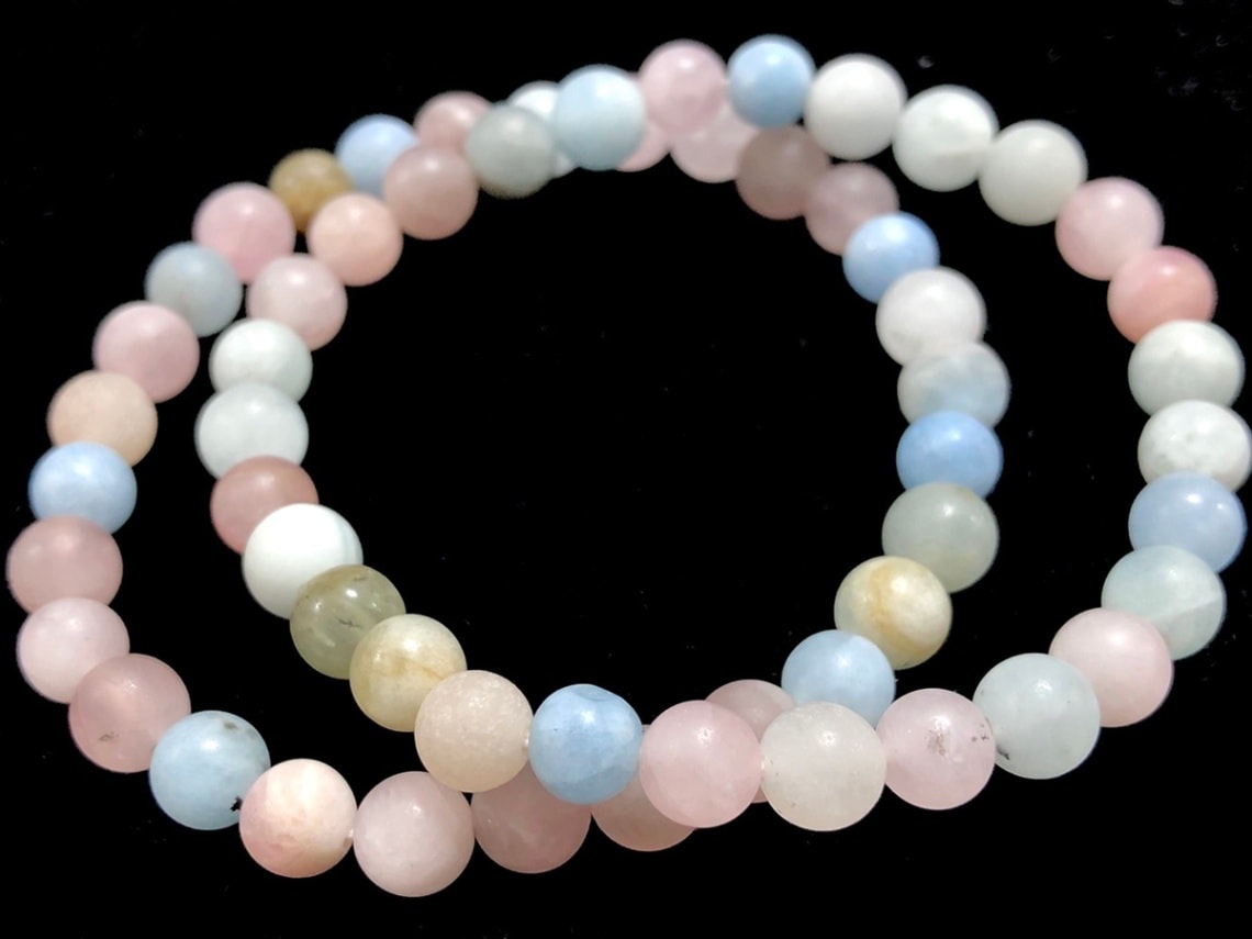 幸運を呼び込み、心を癒す★可憐なパステルカラー★天然石ブレス/フロストミックスベリル(mix beryl/緑柱石)/ラウンド/約6...