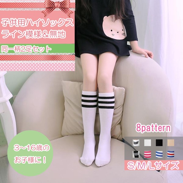 【即納】キッズ用品 ハイソックス ニーソックス ロングソックス 3本ライン スポーティ靴下 ボーダー ストッキング生地 通学 スク...
