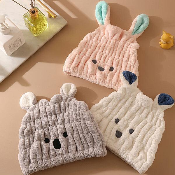 子供用 アニマル キッズキャップ 耳付き ヘアドライキャップ タオルキャップ アニマルフェイス フリース 生地 吸水性 湯冷め予防...