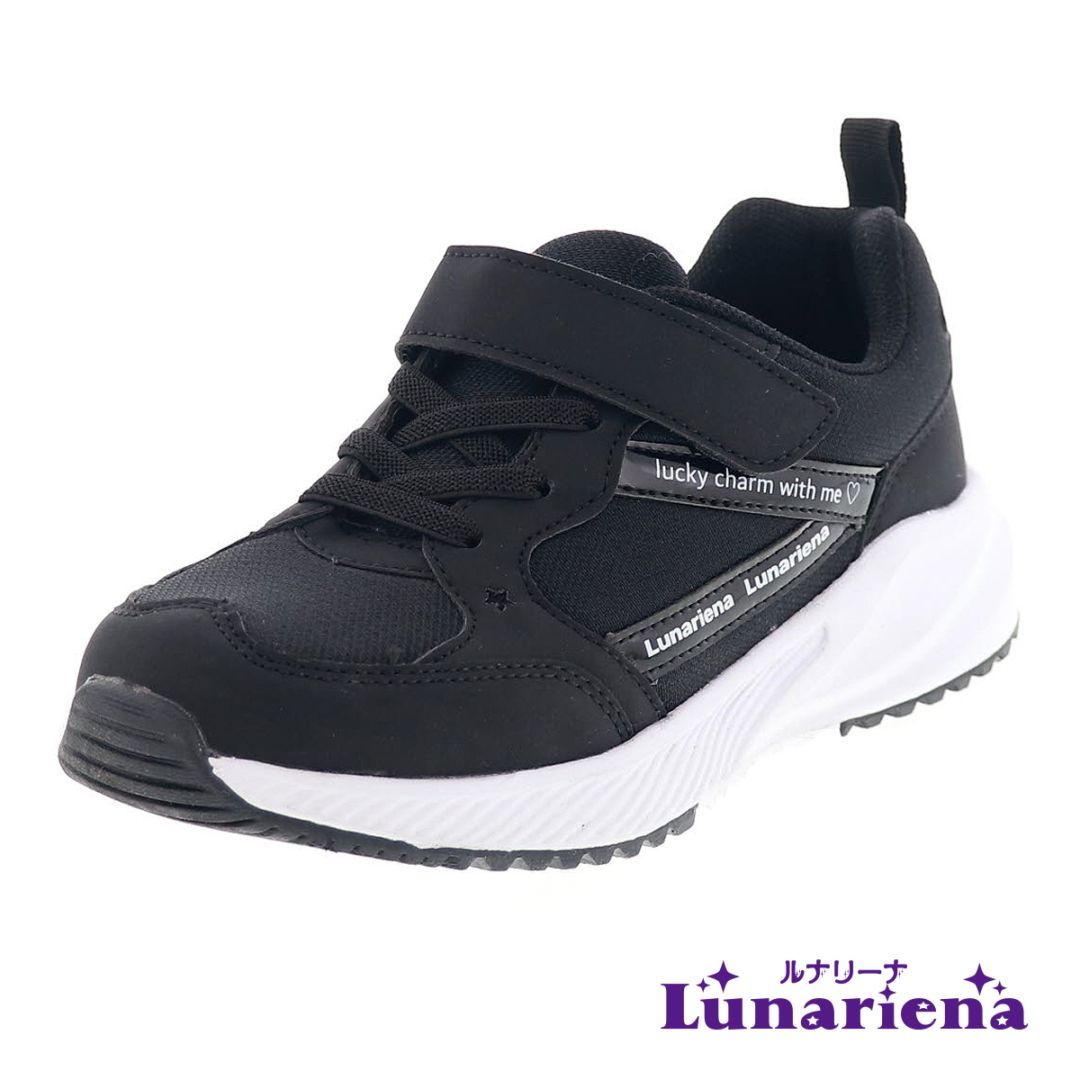 キッズ スニーカー ジュニア シューズ 子供靴 1.5E 少し幅が狭く細めの足に適した設計 ルナリーナ 女の子 ブラック 黒 19...