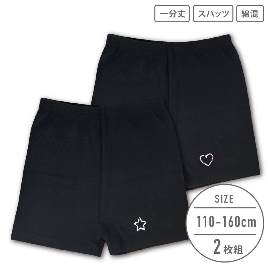【女の子】キッズジュニア オーバーパンツ 一分丈 2枚組 ワンポイント 110~160cm【綿混】