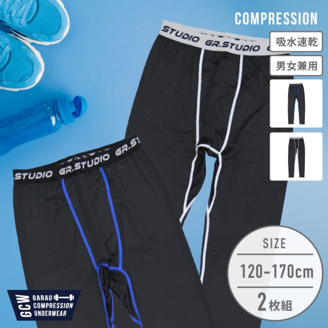 【男女兼用】キッズジュニア コンプレッションタイツ 2枚組 無地 120~170cm【吸水速乾/ストレッチ】