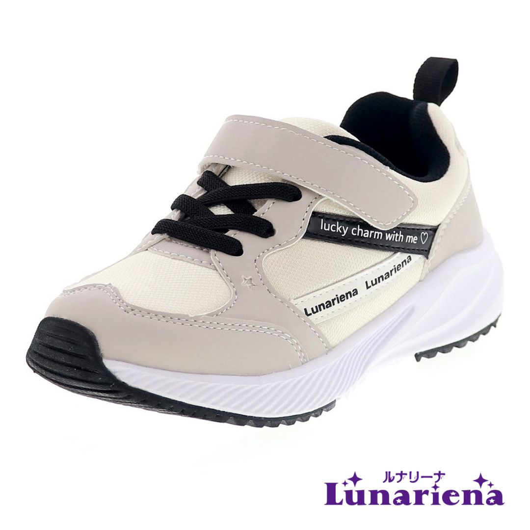 キッズ スニーカー ジュニア シューズ 子供靴 1.5E 少し幅が狭く細めの足に適した設計 ルナリーナ 女の子 ベージュ 19.0...