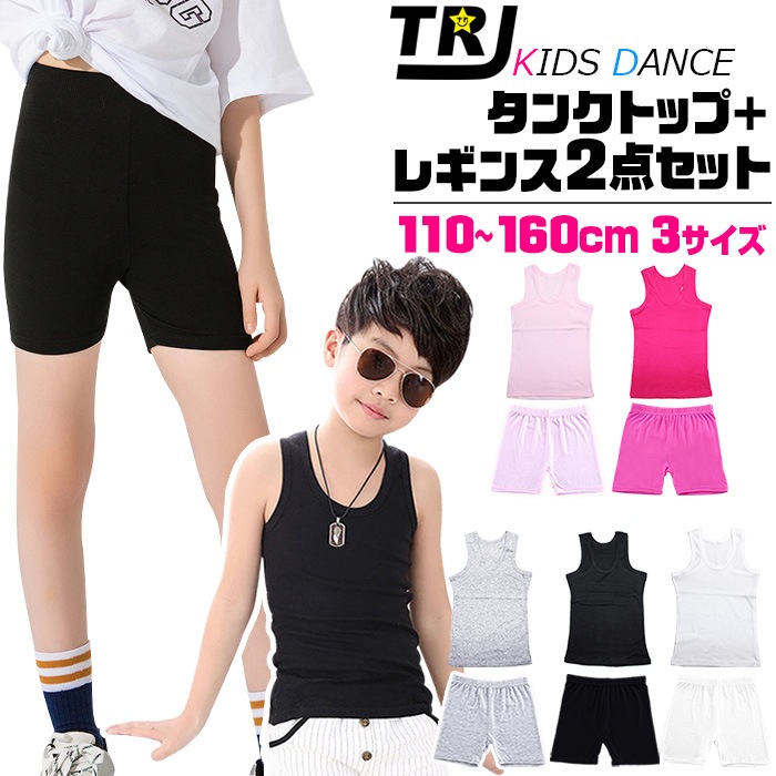 正午まで当日発送 送料無料 キッズ ダンスインナー2点セット 子供向け 一分丈レギンスとタンクトップ キャミソール 女の子 無地 ...