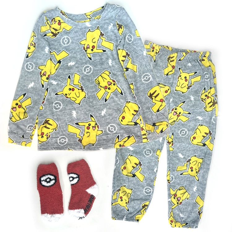 ポケットモンスター ピカチュー パジャマ ソックスセット 長袖 長ズボン フリース ポケモン 子供用 キャラクター 寝巻き 110...