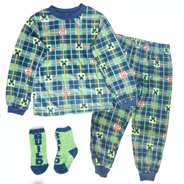 マインクラフト パジャマ ソックスセット 長袖 長ズボン フリース マイクラ 子供用 キャラクター 寝巻き 110 120 130...
