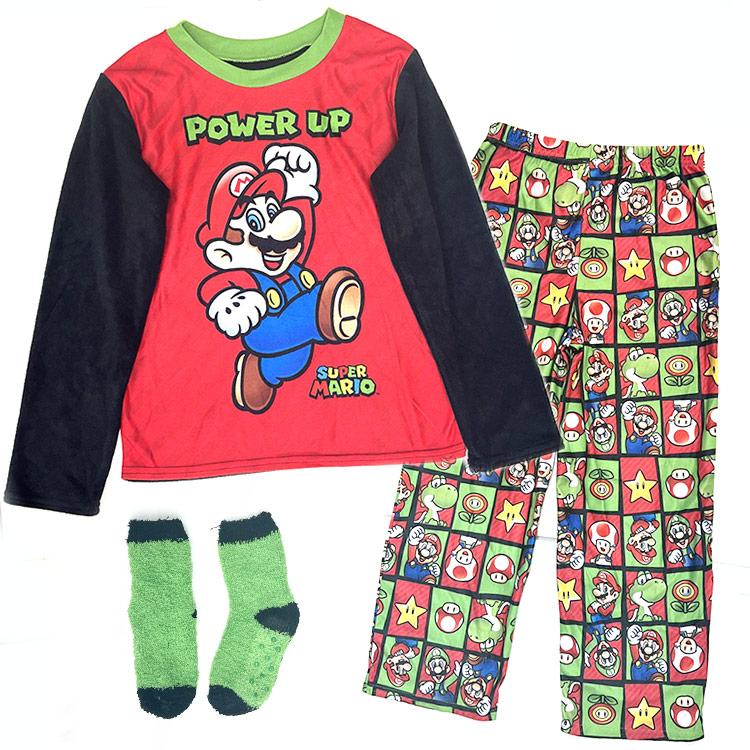 スーパーマリオ パジャマ ソックスセット 長袖 長ズボン フリース マリオ 子供用 キャラクター 寝巻き 110 120 130 ...