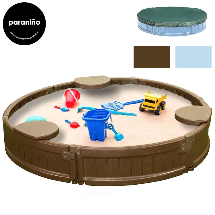 砂場 蓋付き サンドボックス 砂場枠 カバー シート 丸形 プラスチック製 120x120x20cm 家庭用 大型遊具 すなば フ...