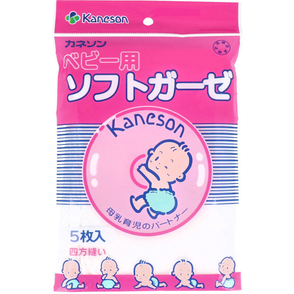 【新生児】【ガーゼ】 カネソン ベビー用ソフトガーゼ 5枚入 四方縫い