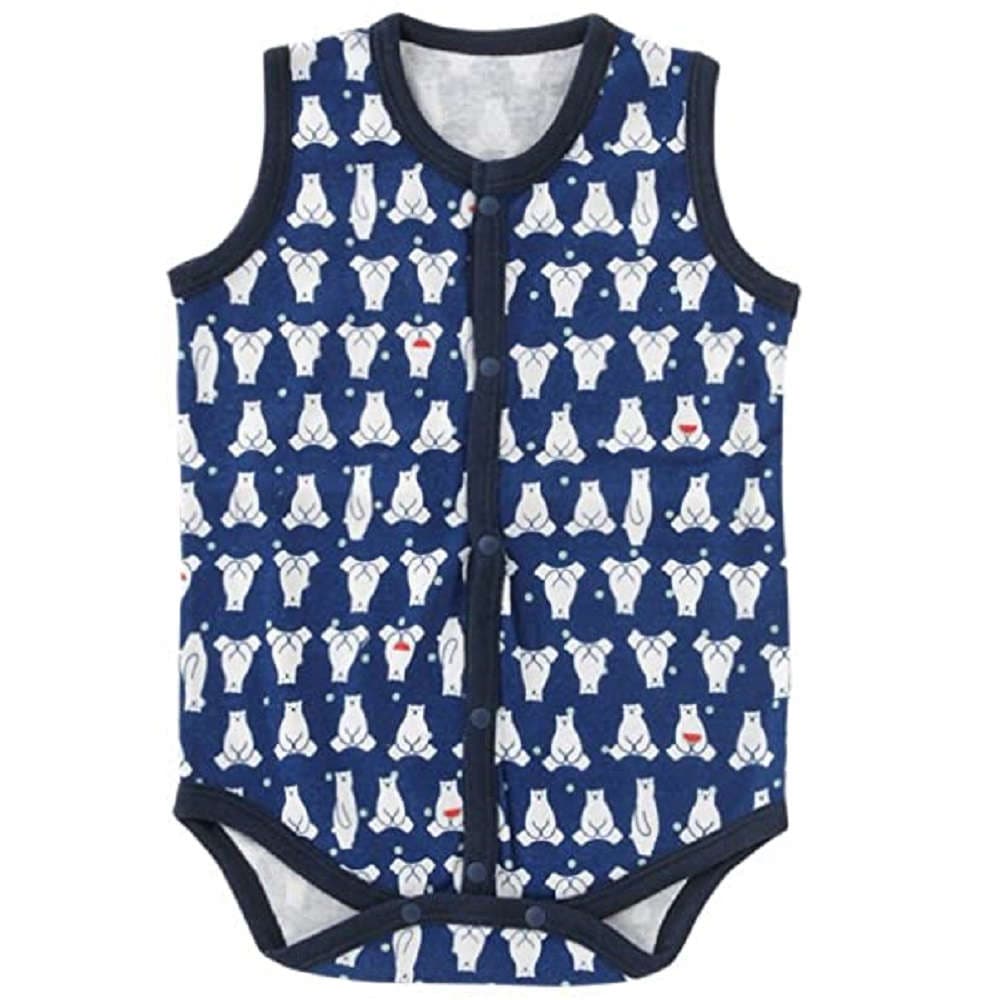 【新生児】 北欧風白クマさん袖なし前開きロンパース ブルー 【サイズ60】