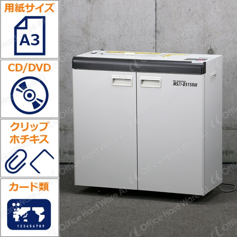 明光商会 中古業務用シュレッダー MSD-D31SRM【2019年製/最大A3/最大26枚/連続運転/CD・DVD・カード類細断可...