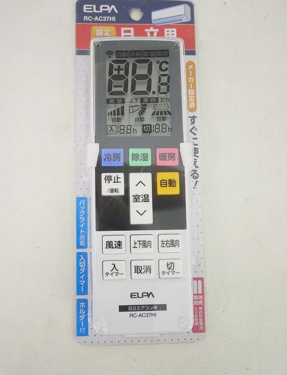 【未使用品】ELPA製/エアコンリモコン 日立用/RC-AC37HI