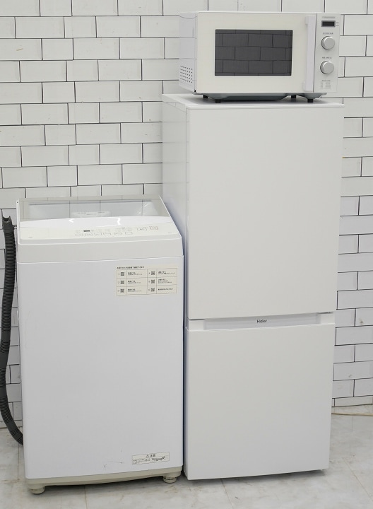 135L、6kg/22年、22年、23年/アクア、アクア、Haier製/(冷蔵庫、洗濯機、フラット型電子レンジ)中古家電3点セット