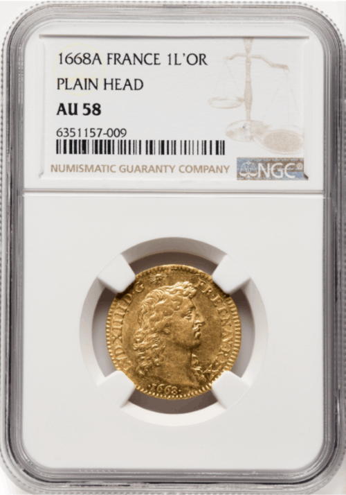 【動画あり】アンティークコイン フランス 1668-A年 ルイ14世 1ルイドール金貨 NGC-AU58