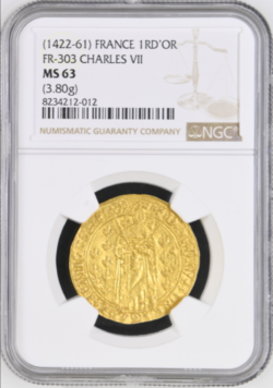 アンティークコイン 1422-61年 フランス シャルル7世 1ロイヤルドール金貨 NGC-MS63