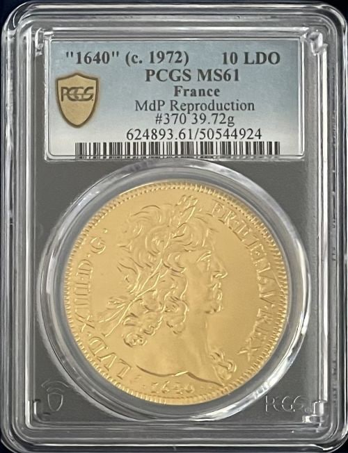 【動画あり】アンティークコイン 1640-A年 フランス ルイ13世 10ルイドール金貨 モダンリストライク PCGS-MS61