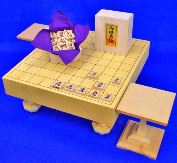 将棋セット ヒバ2寸ハギ足付将棋盤セット(木製将棋駒黄楊特上彫錦旗書)