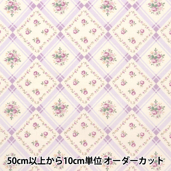 【数量5から】 生地 『シャーティング チェック×花柄 ラベンダー 826653-D』 YUWA 有輪商店