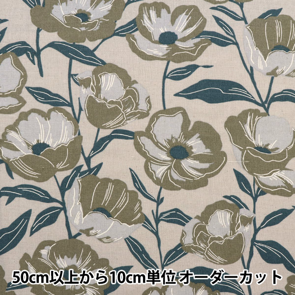 【数量5から】 生地 『綿麻キャンバス 単色北欧花柄 グリーン CC443167-1』 YUWA 有輪商店 シャルマンコレクション