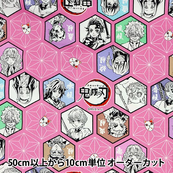 【現品限り】 【数量10から】 生地 『オックス 鬼滅の刃 六角柄 ピンク A7200-3B』
