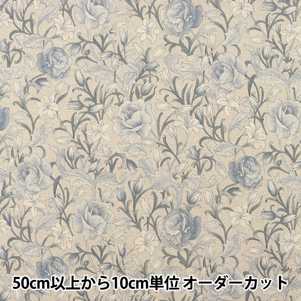 【数量5から】 生地 『綿麻シーチング アンティークフラワー柄 ライトグレー CC443169-3』 YUWA 有輪商店 シャルマ...