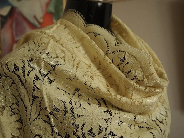 閉店処分大セール お買得 【名門 SOLSTISS/コットンリバーレース】フランス製,輸入生地,コットン/レーヨンクリーム系130...