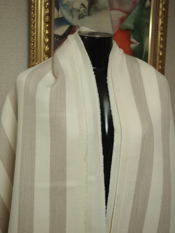 閉店大セールお買得 【カシミヤ/アンゴラ/ダブルフェース ストライブ コート生地】イタリ―製,輸入生地 白/ベージュ カシミヤ20...