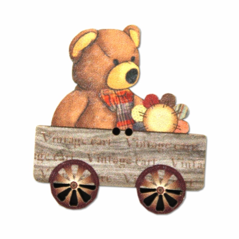 フランス製 木製ボタン 2つ穴 (ちいさなカートに乗ったくま) アトリエ・ボヌール・ドゥ・ジュール