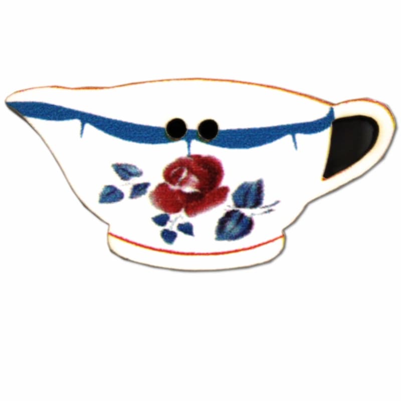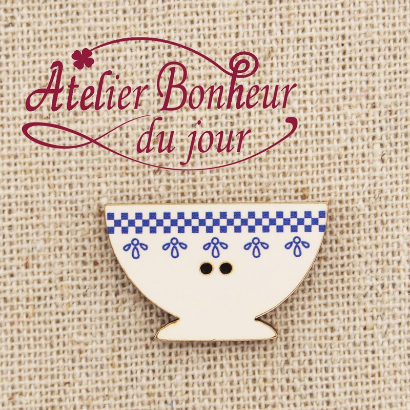 フランス製 木製ボタン 2つ穴 (カフェオレボウル×花柄×水色) アトリエ・ボヌール・ドゥ・ジュール