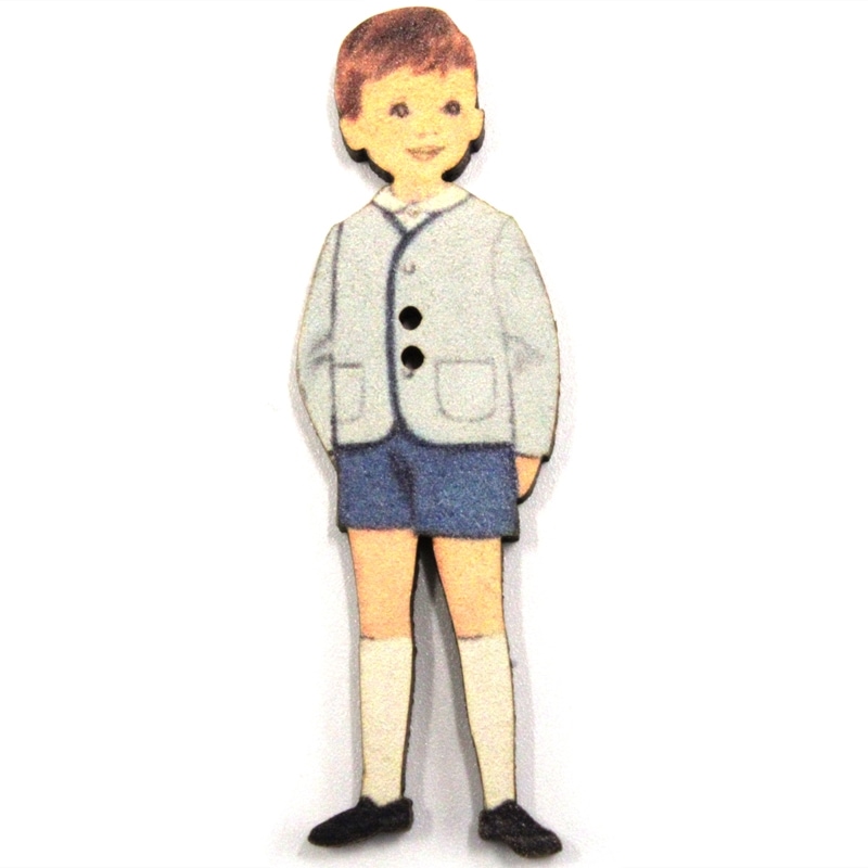 フランス製 木製ボタン 2つ穴 (青いショートパンツの男の子) アトリエ・ボヌール・ドゥ・ジュール