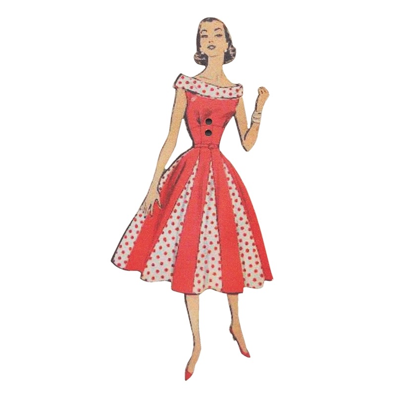 フランス製 木製ボタン 2つ穴 (赤い水玉ドレスの女性) アトリエ・ボヌール・ドゥ・ジュール