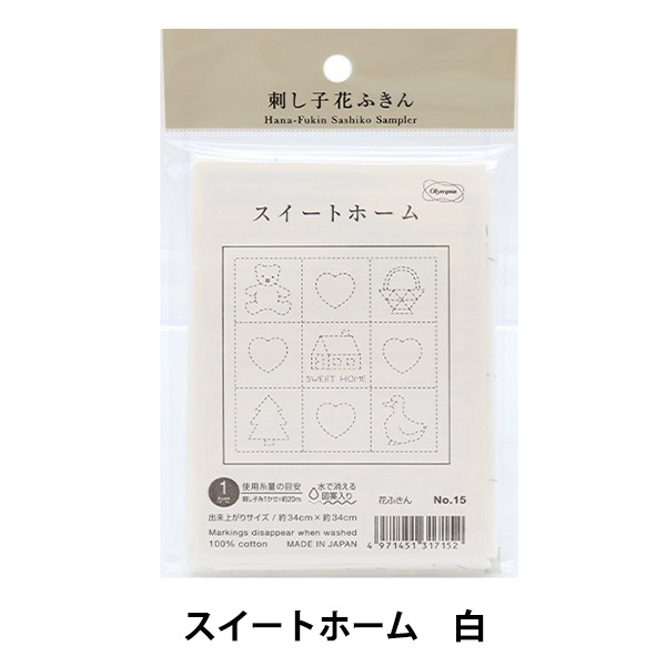刺しゅう布 『刺し子 花ふきん 布パック スイートホーム 白 15』 Olympus オリムパス
