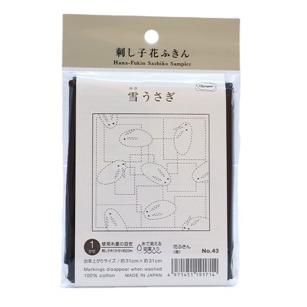 刺しゅう布 『花ふきん 布パック 雪うさぎ 黒 43』 Olympus オリムパス