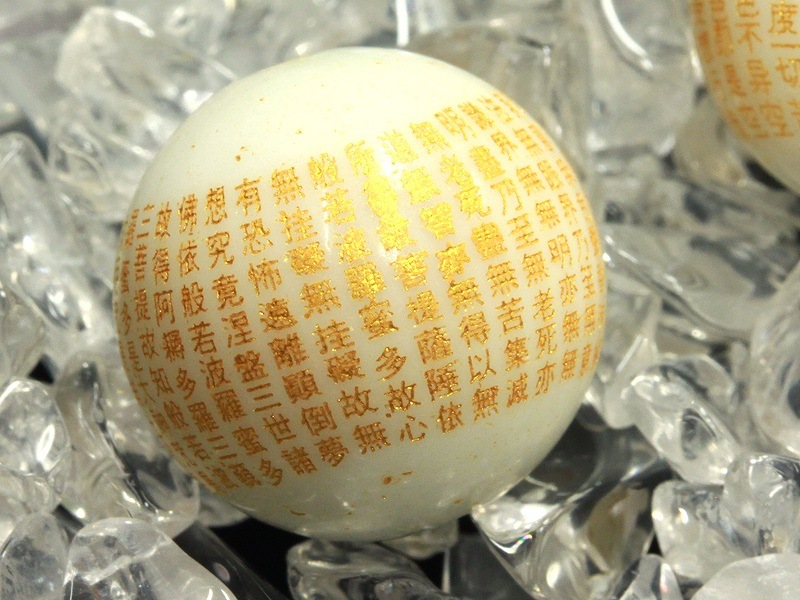 細密金字彫り★お経・数珠★天然石ビーズ/般若心経彫り玉/金彫り/ホワイトオニキス(White Onyx/ホワイトアゲート/白瑪瑙)...