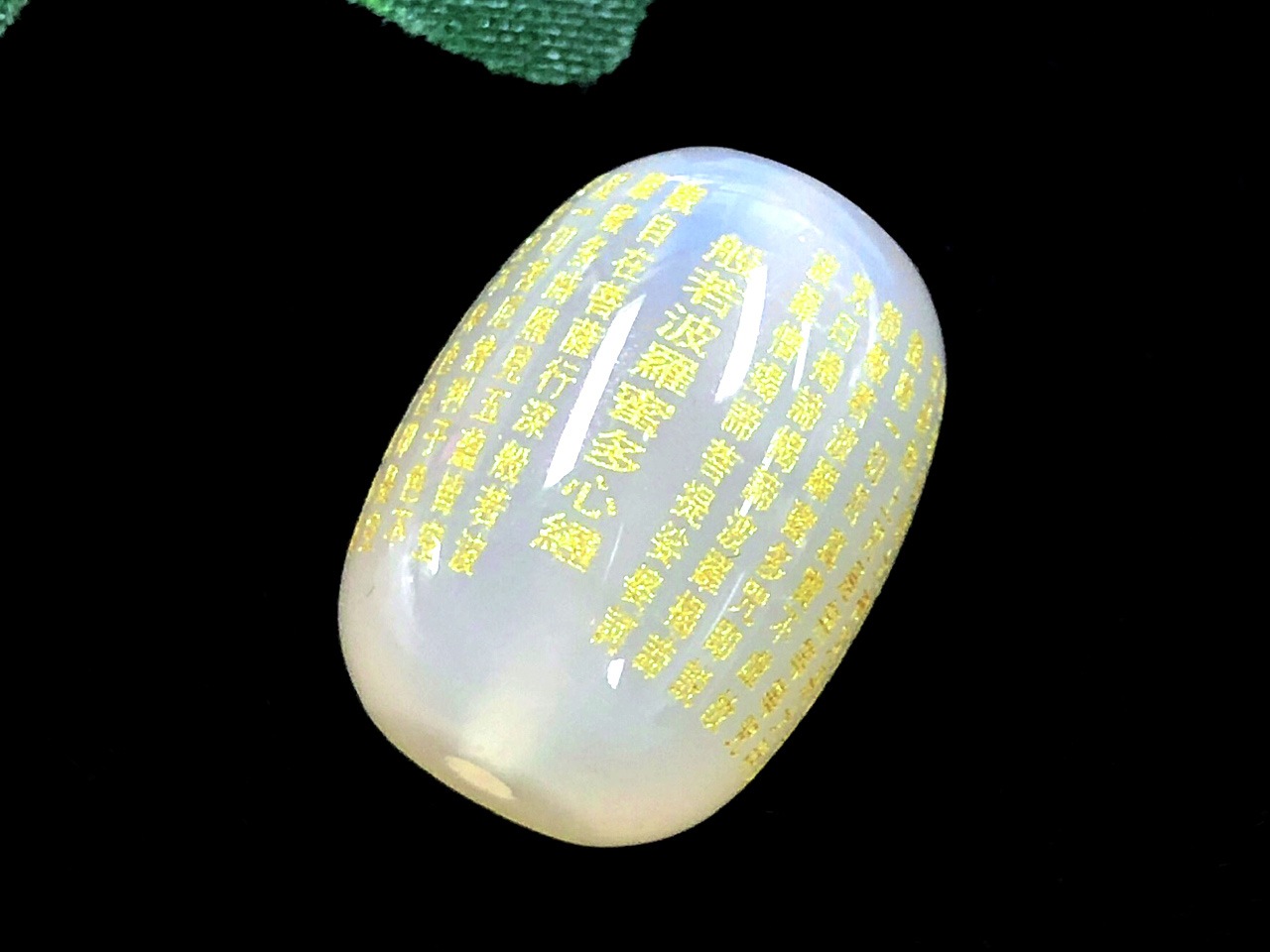 細密金字彫り★お経・数珠★天然石ビーズ/般若心経彫り玉/金彫り/ホワイトアゲート/天珠型/18×13mm/1粒【天然石/パワースト...