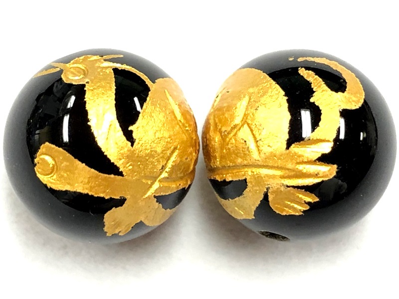 開運・運気上昇運★東の霊獣「青龍」★職人の手彫り!★天然石ビーズ/オニキス四神彫/青龍/ラウンド/14mm/1粒【天然石/パワース...