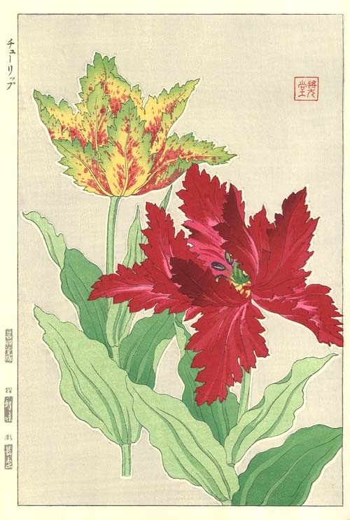 F074 チューリップ 花版画 Flower Woodcut ‐Fringed tulip ‐