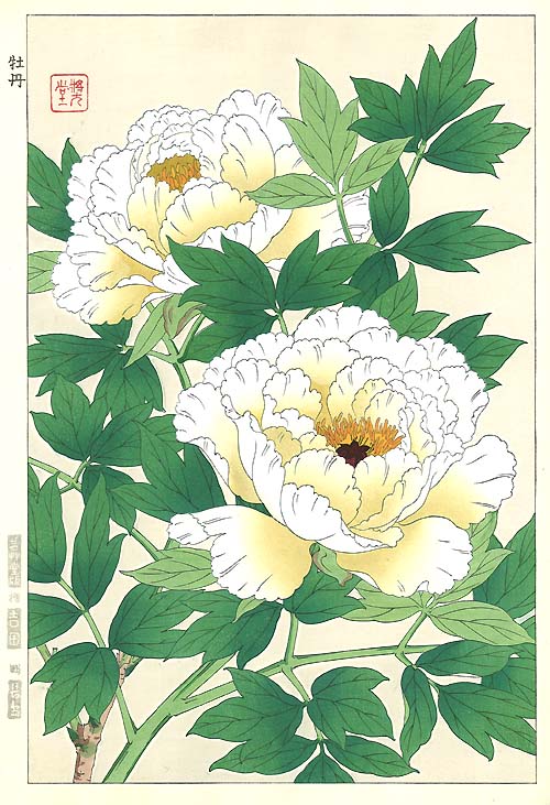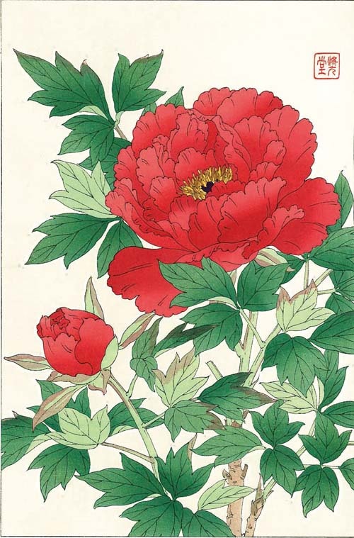F011 牡丹 花版画 Flower Woodcut ‐Peony ‐
