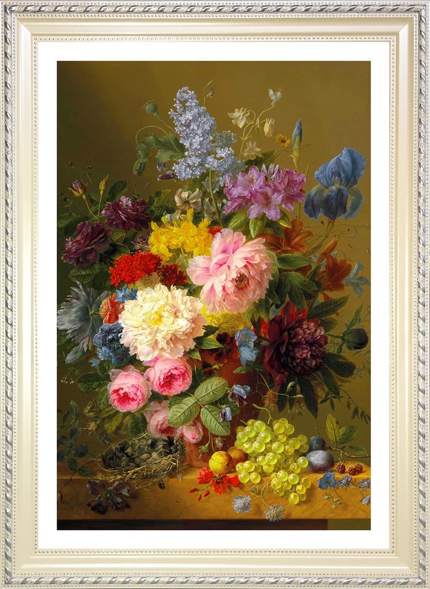 Arnoldus Bloemers 花と果物と鳥の巣 ジークレーポスター額装品
