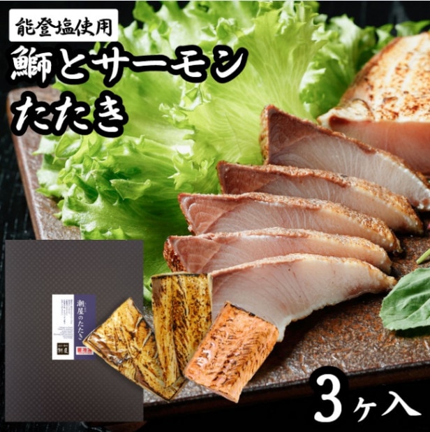 逸味 潮屋:とろけるような濃厚な脂と旨味「鰤とサーモンのたたき詰め合せ(3個入り)」