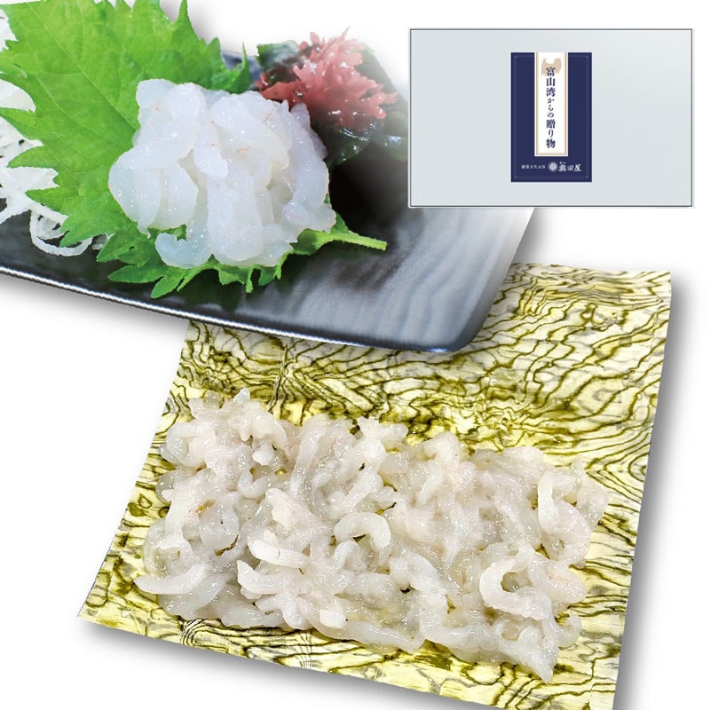 奥田屋:白えびお刺身食べ比べ定番2種セット(お刺身&おぼろ昆布締め)<ギフト箱入り>