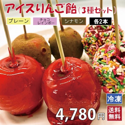 アイスりんご飴 3種セット 6本入り (プレーン・チョコレインボー・シナモン 各2本) 冷凍便 送料無料 ※ご注文から5営業日以内...