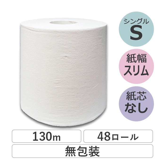 業務用 トイレットペーパー シングル 130m 48ロール イッポ 芯なし スリム幅(107mm) 1ロール 無包装 ミシン目なし...