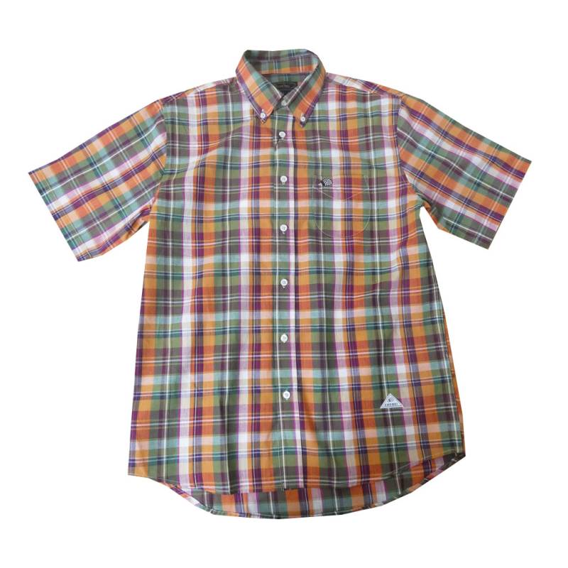 CHUBEI(チュウベイ) メンズ 春夏 半袖 カジュアル ボタンダウンシャツ オレンジ×グリーン チェック 5649 M
